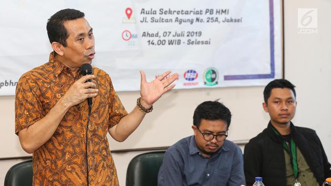 Founder KAHMIPreneur, Kamrussamad menjadi pembicara dalam Tadarus Ekonomi bertajuk Iklim Bisnis dan Stabilitas Harga Pasar, Jakarta, Minggu (7/6/2019). Tadarus Ekonomi membahas prospek ekonomi Indonesia pasca Pemilu 2019 yang dapat memberikan kepastian ekspektasi pasar. (Liputan6.com/Fery Pradolo)