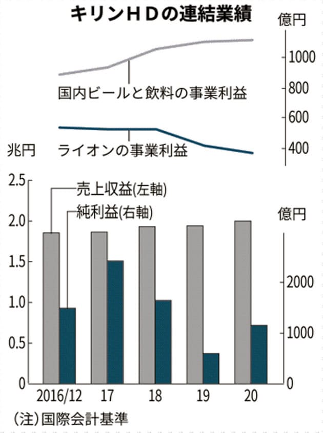キリンHD、純利益64%減 豪子会社と医薬子会社が不振 19年12月期 - 日本経済新聞