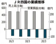 JR四国が8日発表した20年3月期の連結決算は、営業損益が120億円の赤字だった。過去5年間では100億円規模の営業赤字が続いていたが、過去最大の営業損失となった。